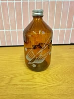 Handgravierte Flasche, mit Schwalbe auf der einen, Schädel auf der anderen Seite. Einzelstück, signiert.