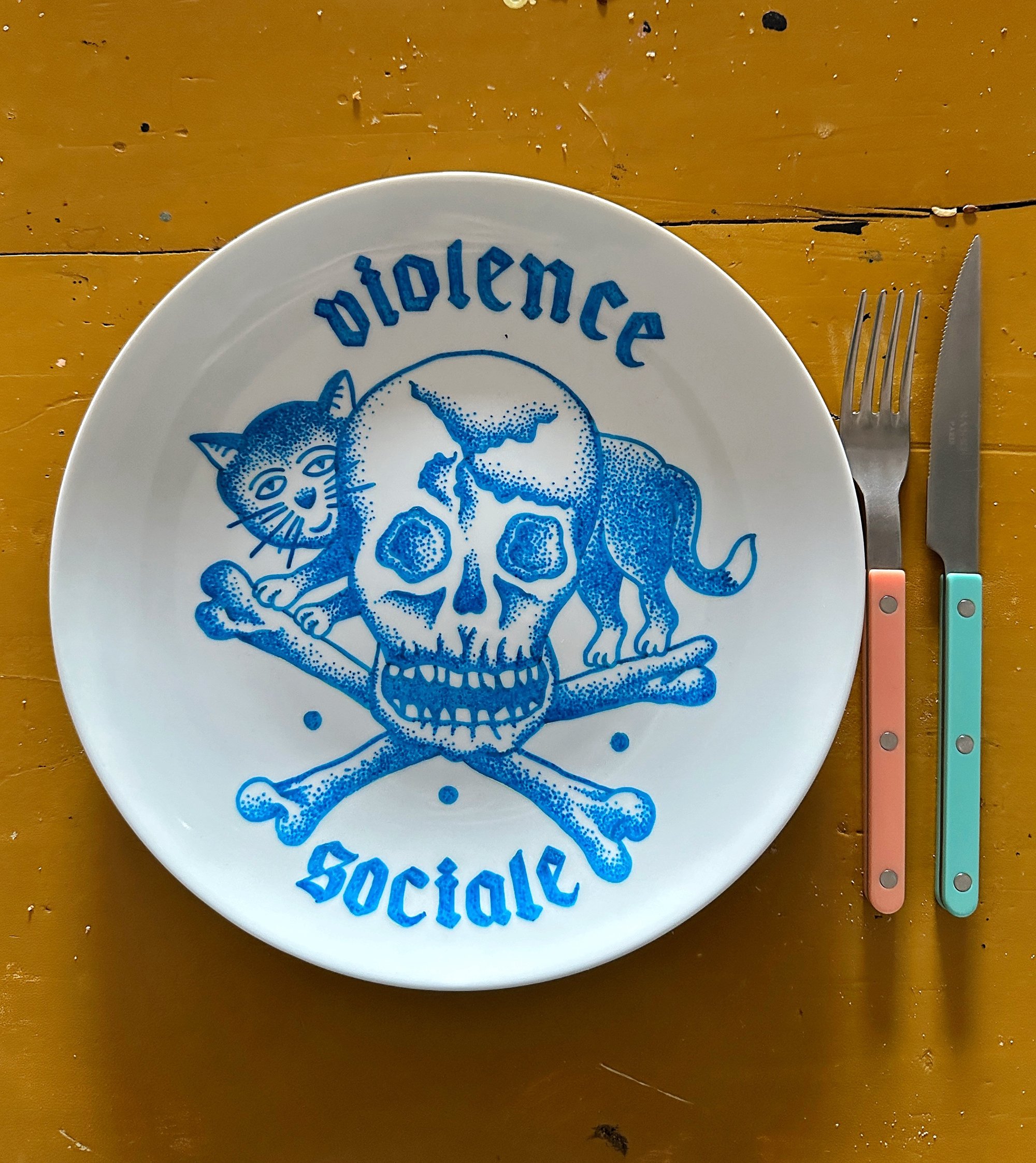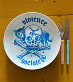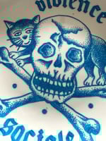 Handbemalter Teller mit Hängeoption. 26cm Durchmesser. Die Bemalung wurde eingebrannt, aber ich verkaufe ihn ausschließlich als Deko da Besteck die Bemalung ggf beschädigen könnte. Violence Sociale ist ein Song von Syndrome 81, einer meiner lieblingsbands, das Design ist ein Klassiker würde ich sagen. Schön blau auf weiß, Delft Style eben. Inklusive Drahthänger.